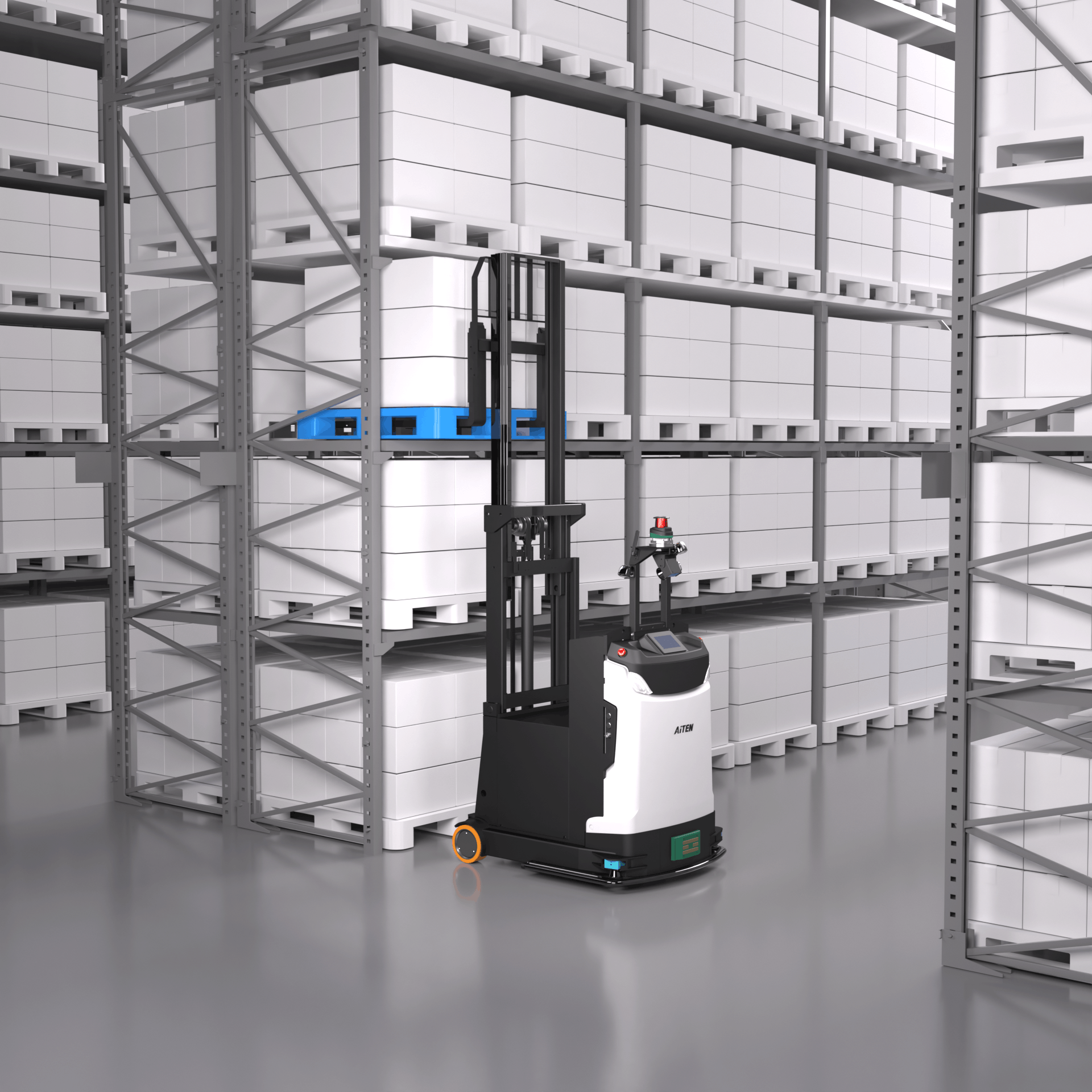 JIUYOU九游AiTEN 系列智能叉车(如 ARV15、APX20)专为室内场景研发,具备自动避障、精准定位、极小转弯半径等优势,可轻松适应高密度货架环境。